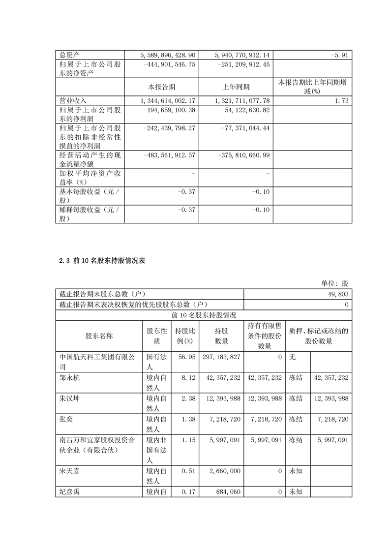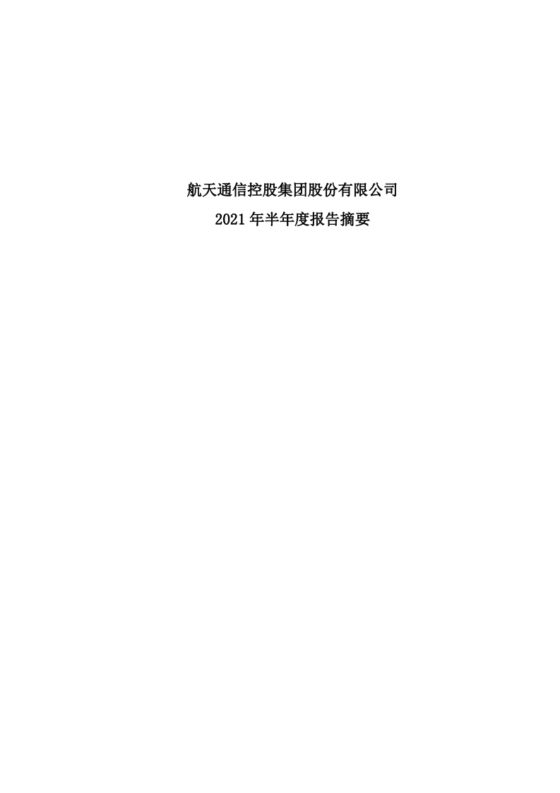 航天通信控股集團股份有限公司2021年半年度報告摘要